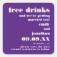 Ein lustiger Aufkleber für Ihre Save the Date Mailings und Favoriten mit diesem vollständig anpassbaren Design. Der Text ist alle rechts ausgerichtet, mit fett weißer Typografie mit Slogline Free Drinks und Wir werden auch heiraten. Sie können Text und Hintergrund in verschiedene Farben ändern, um Ihr Hochzeitstil besser zu Anzug, wenn Sie möchten, über die Option Weitere anpassen.