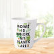 Einführung in unsere Tasse Wasserfarben Housepflanzengärtnerangebot. Mit getöpfter Pflanze Aquarellbild und dem Sprichwort "Zuhause ist, wo meine Pflanze sind", ist jeder Schluck eine botanische Freude. Für den Gartenliebhaber in dir!