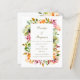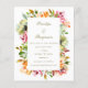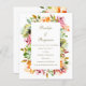 Diese preisgünstige Hochzeitseinladung mit einer schönen und farbenfrohen, rustikalen Blumengrenze mit einfacher Typografie und einem individuellen QR-Code auf der Rückseite der Einladung.