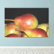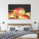 Farbenfrohe große Leinwand Fruchtprint mit Birnen. Die Farben sind in Holzkohle, schwarz, grün, bordeauxrot und braun gehalten.