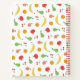 Chic Spiralrezeptur-Notizbuch mit einem Muster köstlicher Früchte - Bananen, Äpfel, Orangen, Birnen, Kirschen und Pfirsiche - wo Sie Ihren Namen und das Thema des Notizbuches auf einem bezaubernden Etikett hinzufügen können.