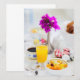 Zum Frühstück werden frischer Kaffee, Orangensaft und Fruchtsalat serviert