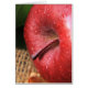 Ein naher Apfel mit Wassertropfen und Herbstlauben
