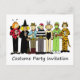 Cartoon-Kinder in extravagantem Kleid, einschließlich Cowboy, Piraten, Doktor, Ladybug etc. Die Worte "KostümParty Einladung" sind unter dem Bild.