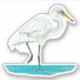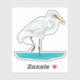 Eine Illustration eines weißen Helden. Diese Vögel finden sich in Südasien, Australien und Neuseeland. Der Maori-Name für sie ist Kotuku. Das ist Teil meiner neuseeländischen Vogelkunst-Sammlung. Das ist ein größerer Held, ähnlich einem Espresso. Dieser Vogel wird in einem Stil gezeichnet, den Sie vielleicht in einem Kinderbuch sehen. Die Federn des Vogels haben Fäden und Stiche.