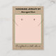Kraft paper jewelry display cards. Upload Your Logo on backside or delete sample placeholder to leave blank. Handmade Jewelry by Name typography in black. Crafted with Love written in black script (keep or insert short tagline, or delete to leave area blank). Name will appear on front and backside. Two Small Circles against blush pink and sage green framed background. NOTE: Circles and Lines on each side are not pre-cut, you will need to use a Small hole punch, and scissors or box knife cutter type to make clean cut holes and small slits, to then place your Earring Studs and Necklace in. Backside has small red heart. Insert telephone number, email address, website, social media handle, as needed. Insert Your Business Website QR Code for customers to Shop 24/7, or delete as needed. Original Design by TamiraZDesigns.