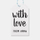 Einfache, maßgeschneiderte Geschenketiketten. Der Stil und die Größe des Schriftartes können durch Klicken auf "Weiter anpassen" geändert werden. Der Text auf der Rückseite kann in eine persönliche Nachricht geändert oder gelöscht werden.