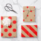 Kraft Moderne rote Weihnachtssteine und Streifen Geschenkpapier Set