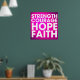 Kraft, Mut, Hoffnung und Glaube inspirierende Worte auf einem Plakatdesign mit einem Gradientenrosa Hintergrund.