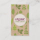 Ein natürliches Bio Visitenkartendesign für das Gesundheitswesen oder für Unternehmen, das auf die Natur oder natürliche Hautpflege, Ernährung oder gesunde Ernährung ausgerichtet ist. Es hat einen braunen Hintergrund aus Kraftpapier mit grünen Blätter und Pflaumenakzenten lila für ein wenig Spaß. Auch gut geeignet für Gesundheitsläden, ganzheitliche Therapeuten, natürliche Wellness-Center Kliniken, Menschen auf vegetarische und vegane und ähnliche allnatürliche, Bio Branchen ausgerichtet.