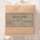 Ein Etikett für Seife oder Kosmetikprodukte mit einem Hintergrund aus Kraftpapier und grünem Text. Hier finden Sie Platz für Ihren Firmennamen, Zutaten, Geschäftsinformationen und vieles mehr.