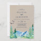 Diese lässige Hochzeit in Urlaubsort mit kraftvollen Felsen lädt zu einer Hochzeit im Freien ein. Das Design besticht durch eine blau-grün gestrichene Wildnislandschaft mit Aquarellkiefern, Vögeln und Bergen auf einem Imitat mit einem hellen Kraftpapier-Hintergrund. Bitte beachten Sie: Dieses Papier ist nicht auf echtes Kraftpapier gedruckt. Es ist eine hochwertige Grafik, die wie Kraftpapier aussieht.