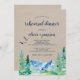 Dieses kraft Rocky Mountain Probe Dinner lädt zu einer Hochzeitsfeier im Freien ein. Das Design besticht durch eine blau-grün gestrichene Wildnislandschaft mit Aquarellkiefern, Vögeln und Bergen auf einem Imitat mit einem hellen Kraftpapier-Hintergrund. Bitte beachten Sie: Dieses Papier ist nicht auf echtes Kraftpapier gedruckt. Es ist eine hochwertige Grafik, die wie Kraftpapier aussieht.
