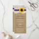 Die Kraft-, Spitzen- und Sonnenblumenkollektion ist ein atemberaubendes Design mit einem hübschen rustikalen Kraft-Papiereffekthintergrund mit einem romantischen Vintagen, weißen Spitzeneffekt-Trimm, der mit einer atemberaubenden Sonnenblume und einem lila Farbbandeffekt vollendet wird. Diese Programme können für Ihren besondere Anlass personalisiert sein und würden die perfekte Vorlage für Hochzeiten, Brautpartys, Verlobungsfeiern, Geburtstagsfeiern und vieles mehr machen. *Bitte beachten Sie, dass Zazzle nur gedruckte Produkte verkauft, sodass dieses Produkt keine echten Spitzen-, Sonnenblumen- oder Farbbandmaterialien enthält. ÜBERPRÜFEN SIE DIE ENTSPRECHENDEN ELEMENTE FÜR DIESE ERHEBUNG