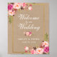 Kraft Watercolor Floral Pink Gold Hochzeit Willkom Poster
