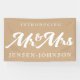 Vielleicht zeigen Sie dies hinter dem Kuchen/Dessert Tisch im Empfang Bereich. Eine schöne Art, das neu verheiratete Mr. & Mrs. vorzustellen, auch gut für Foto-Gelegenheiten. Diese Banner-Vorlage ist mit einem natürlichen, beigefarbenen, neutralen Karton wie Hintergrund mit herrlicher weißer Typografie/neugierigen, eleganten Handschrift überlagert. Die hervorragende Kalligraphie macht sie zu einem eleganten, klassischen Banner, der im Empfang zu sehen ist. Besonders ausgezeichnet, wenn das Hochzeitsthema neutral ist, natürliche Holztäfelungen und Pappe (weiß und braun, beige).