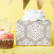 Weihnachtsgeschenkpapier bietet moderne Schneeflocken in weiß auf Kraftpapier. Passen Sie die Hintergrundfarbe Ihrer Wahl an.