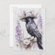 Krähe Rabe Crow mit Hut und Blumen Watercolor Postkarte
