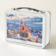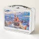 Schöne weiße Lunchbox für Kinder mit Krakauer Dämmerung, landschaftliche mittelalterliche Stadt in Polen.