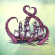Kraken Octopus Segelschiff nautisch Fensteraufkleber