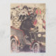 St. Nikolaus mit seinem Begleiter Krampus auf einer Fahrt mit einigen Kindern. Dieser Krampusdruck zeigt einen Priester oder St. Nikolaus und Krampus, der mit Kindern im Auto fährt.