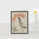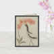 Ein whooping Kran verlängert seinen Hals aufwärts, um eine übergroße Orchidee im Asiatisch-inspirierten Entwurf auf dieser Anmerkungskarte zu erreichen. Der Kran wird mit Schwarzem auf seinem Hals und Flügeln und mit Rot auf seinem Gesicht und Kopf markiert. Die Phalaenopsisorchidee ist blasse Orange mit tiefgrünem Blätter an der Basis seines einen.Bogen.bildenstammes. Der tiefe beige Hintergrund und der beunruhigte Auftritt geben dem Bild den Blick einer antiken Malerei auf Papier, das im Laufe der Zeit verblaßt ist. Von meinem geschaffenen Bild der Vorlage digital.