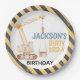 Crane Construction Dirty 3rdy Birthday Plate Bau themed dreckige 3rd Birthday Papier Platte mit einem Kran und gestreifte gelb und schwarz Muster.