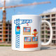 Ein Kranbetreiber und ein Bauarbeiter auf einem Gebäude. Dieses Design sieht auf dieser Tasse wirklich effektiv aus