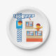 Ein Kranbetreiber und ein Bauarbeiter auf einem Gebäude. Dieses Design wirkt auf diese Paper-Teller sehr effektiv