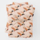 Japanische Krane, in hübschen Aprikosen-, Orange-, Sonnenuntergang-Farben mit schwarzem Trimm und cremefarbenem Hintergrund. Orientvögel fliegen, Vintag