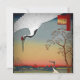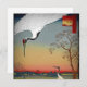 Antikes Bild von zwei Kranen ein Bach und Kirschbäume.