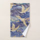 Krane sind Symbole für Glück, Ausgewogenheit, Langlebigkeit und ewige Jugend in ganz Asien. In diesem Detail eines japanischen Wandteppichs werden Krane über Wasser in Ockertönen (Goldsimulierung) und Blues gezeigt. Individuell nach Ihren Wünschen!