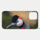 Der elegante, schwarz gekrönte Kran ist groß und stolz, seine auffallende Silhouette ist mit feinen schwarz-weißen Federn geschmückt. Seine blauen Augen leuchten mit Intelligenz und reflektieren sein scharfes Bewusstsein. Die Präsenz des Krans ist ein Symbol für Schönheit und Harmonie in der Natur.