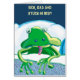 Gönnen Sie sich einen grünen Frosch im Bett mit Flecken auf der Zunge Doktor Duck steht mit seinem Clipboard Diagramm Funny get well card