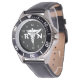 Herrenuhr aus Edelstahl mit schwarzem Lederarmband