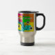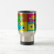 Krankenpflege-Studenten-entwerfen Retro Blumen-Reise-Tasse, Hintergrund in den mehrfachen hellen Farben mit retro Schwarzweiss-Blumen und Stethoskop.