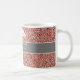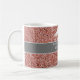 Überraschen Sie sie mit dieser Nurse Practitioner Pink Rose Gold Personalisiert Coffee Tasse. Es ist mit rosa rosa goldfarbenen Imitaten Glitzer Hintergrund und grau horizontalen Streifen in der Mitte. Der Text ist "Krankenschwester Praktizierende" in weißer Schrift. Name ist in weißem, trendigem, handgeschriebenem Skript auf der Vorderseite. In der Mitte befindet sich ein weißes Caduceus-Symbol mit Namen.