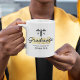 Maßgeschneiderte Tasse für den Abschluss der Kindergärten mit dem Caduceus-Symbol, 2023 in Imitaten Goldfolie, Schulname, Schülername und das Wort Absolvent in einem Skript-Schriftart.