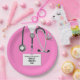 Rosa Party-Teller zum Thema Medizin für Schulabschlussfeier oder Krankenhausveranstaltungen. Text bearbeiten, um ihn zu personalisieren.