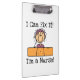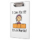 Ein großes Klemmbrett für Krankenschwestern, denen Strichmännchen, Eigenschaften eine weibliche Strichmännchenkrankenschwester mit einem riesigen Größenverband und Text der Liebe, der liest, ich ihn reparieren können! Ich bin eine Krankenschwester!
