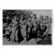 Gruppe von Krankenschwestern, die Pose mit Fatigues und schweren Stiefeln vor einem Jeep tragen. Vintage Public Domain Fotografie.