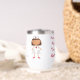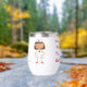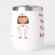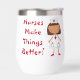 Das Bild einer niedlichen Krankenschwester wiederholt sich zweimal auf diesem Tumbler, zusammen mit dem Text in rot "Krankenschwester machen Dinge besser". Es gibt auch ein Vorlagenfeld für einen Namen. Ideal für die Krankenschwester in Ihrem Leben!