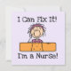 Ein Strichmännchen Krankenschwester mit einem großen Verband und Text, der "Ich kann es reparieren! Ich bin eine Krankenschwester!" auf T - Shirt der Krankenschwester, auf Hoodies, Totentaschen, Magneten, Tasse, Schlüsselanhängern, Karten und anderen Pflegeartikeln und Geschenken.