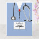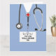 Kreative Krankenpflege Schule oder Medizin Schule Abschluss Karte mit blauen Krankenhaus-Skrupel. So personalisieren Sie die Bearbeitung von Text, um Namen und Anmeldeinformationen für das Gesundheitswesen hinzuzufügen.