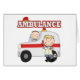 Zwei Strichmännchen EMTs und ein Krankenwagen mit Text, der "KRANKENWAGEN" auf Krankenwagen-T - Shirts, Bodysuits, Tassen, Magneten, Taschentaschen, Aufkleber und andere Feuerwehrmannkleidung und -geschenke liest.