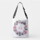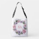 Hübsche, handbemalte Garland von Blume tote Tasche mit einem schönen runden Kranz von Blume in rosa und lila mit grünen Blätter dazwischen. Sie können dieses Design mit Ihren Monogrammen, Initialen oder Namen anpassen. Klicken Sie auf Anpassen, um Schriftart und Farben zu ändern, um Ihr eigenes einzigartiges Design zu erstellen. Ein Geschenk für Gärtner, Naturforscher oder alle, die Blume und Natur Lieben.
