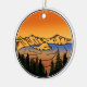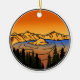 Der Kratersee leuchtet in Orange und Gold in diesem Line Art Design.