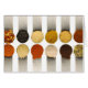 Ein wunderschönes Foto von zwölf Pulverinhaltsstoffen in Teelöffeln abgeschieden auf weißem Hintergrund. Copyright © 2007 Karin Hildebrand Lau.