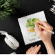 Kräuterleben, Aquarellmalerei auf einem grünen und gelben Ginkgo-Bloba-Blatt auf weißem Hintergrund