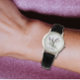 Uhr, Klassische Damenuhr mit schwarzen Lederarmband